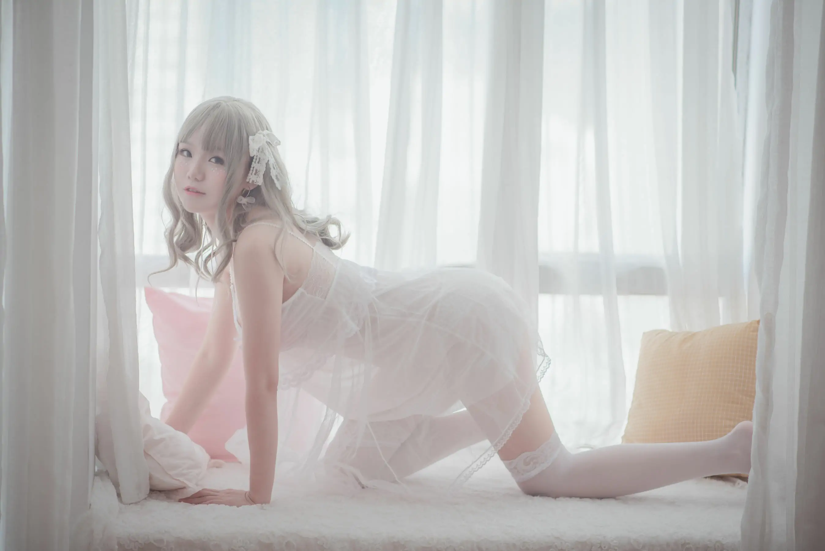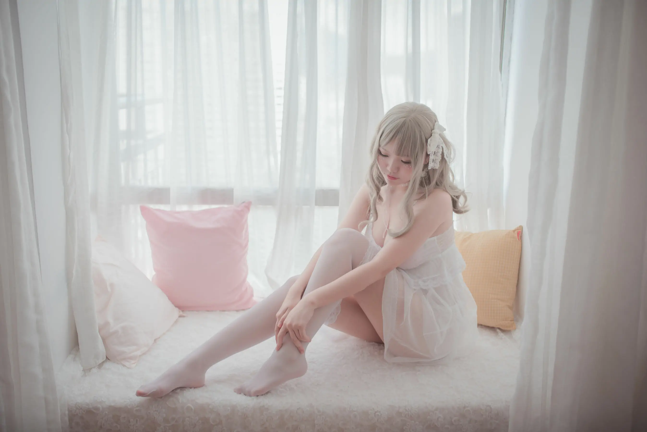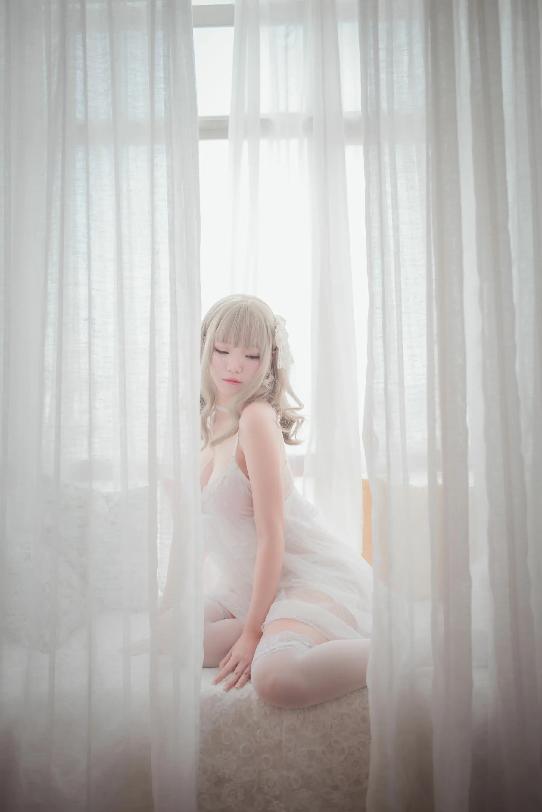 [萝莉COS] Yoko宅夏《白色丝质连衣裙》(26P)