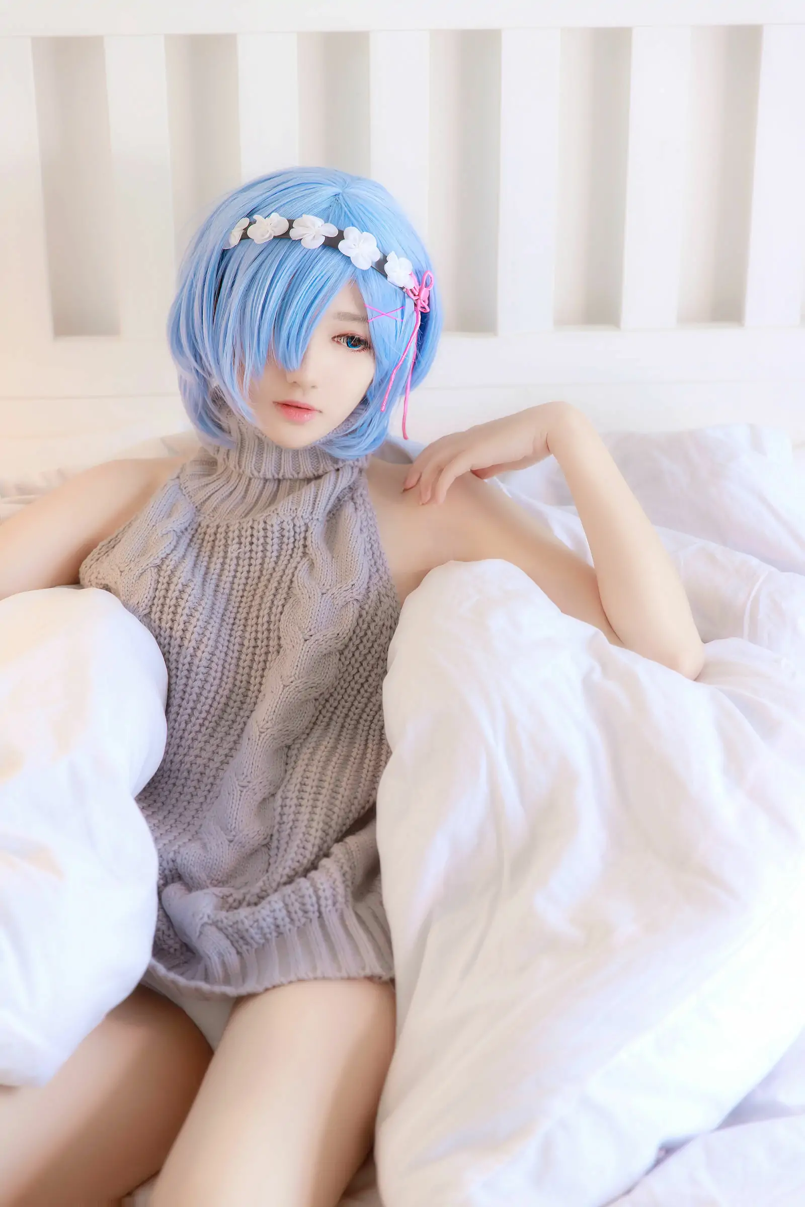[萝莉COS] 南桃Momoko - 蕾姆露背毛衣(12P)