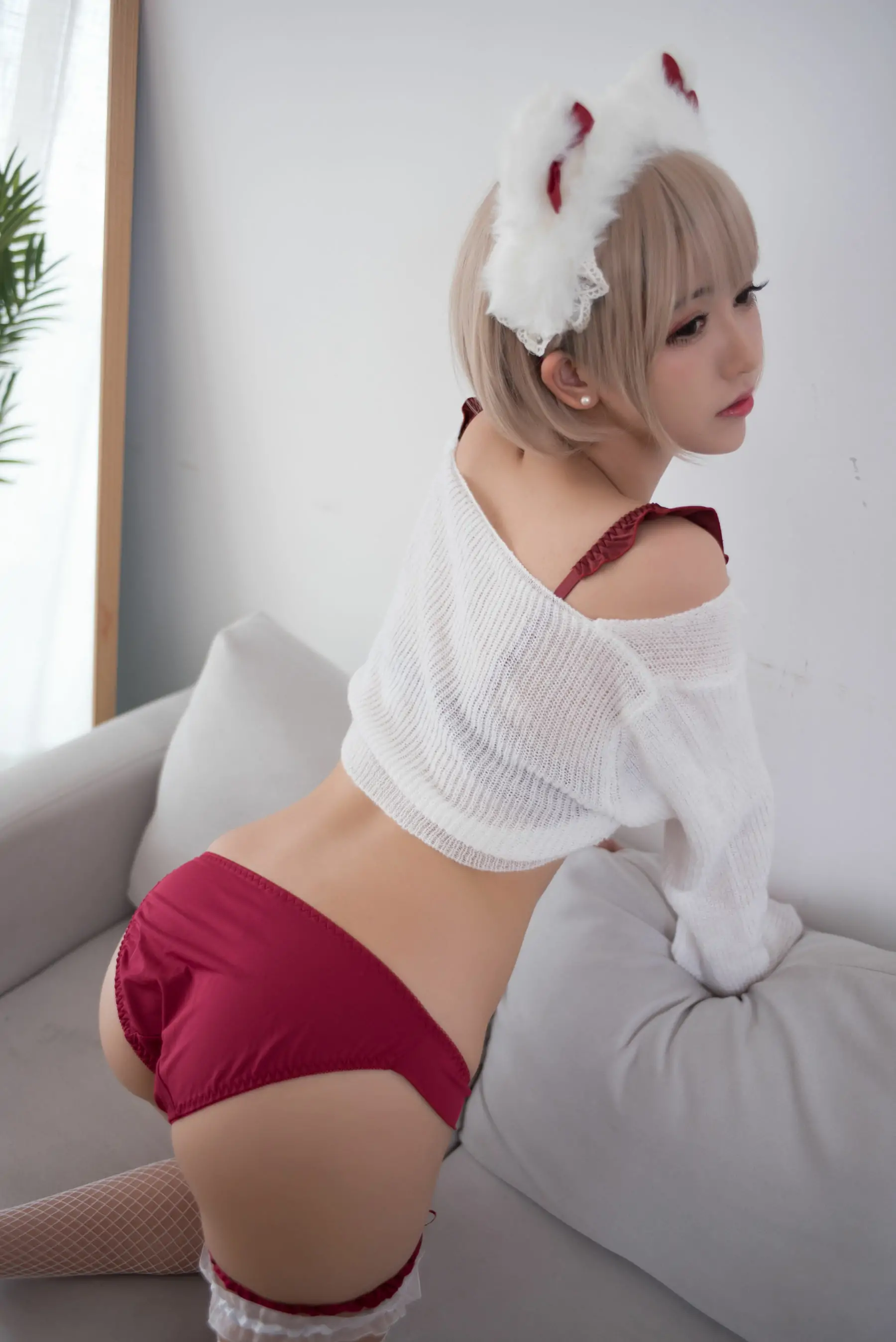 [萝莉COS] 鳗鱼霏儿 - 兽耳 圣诞白网袜(18P)