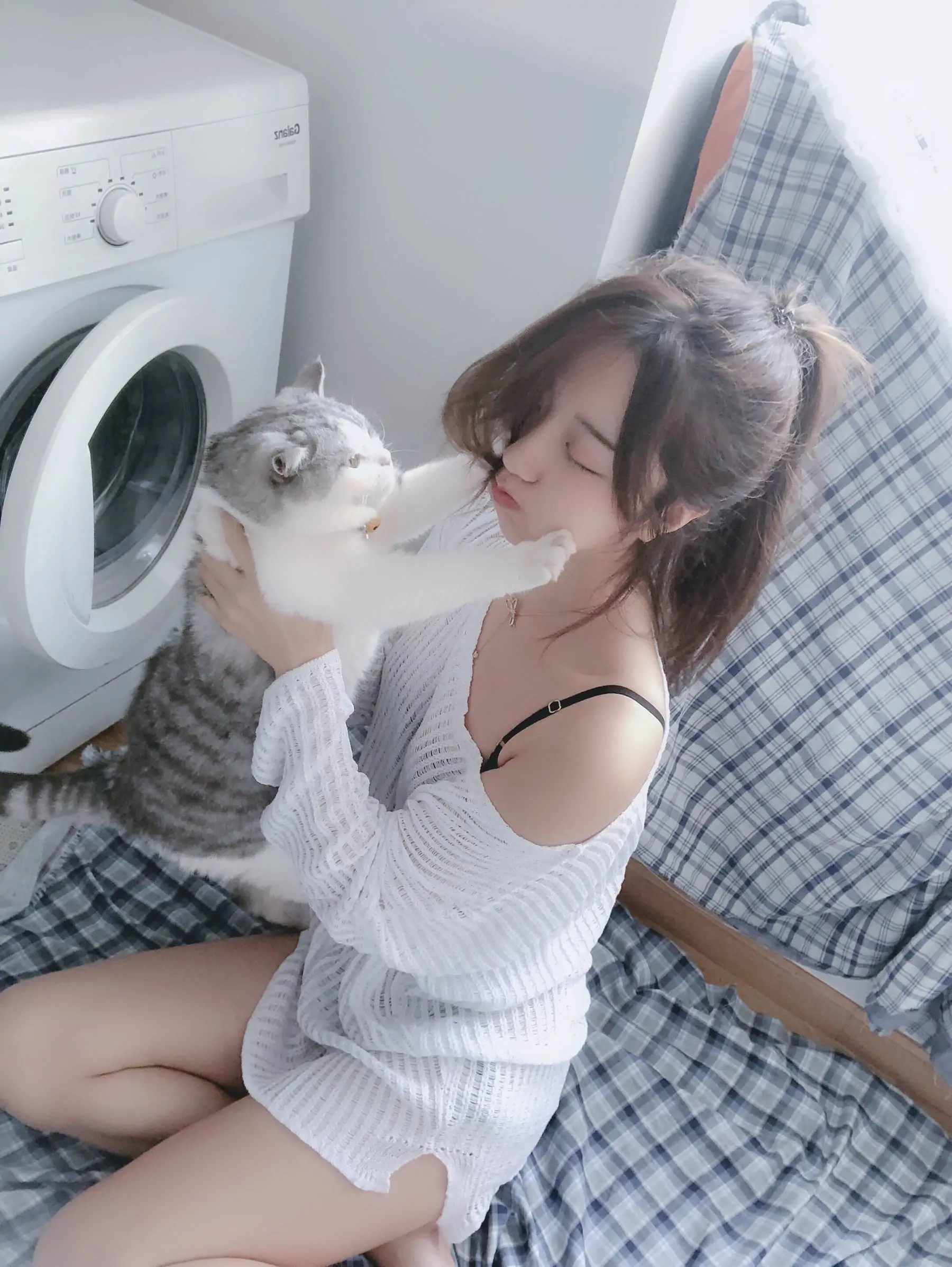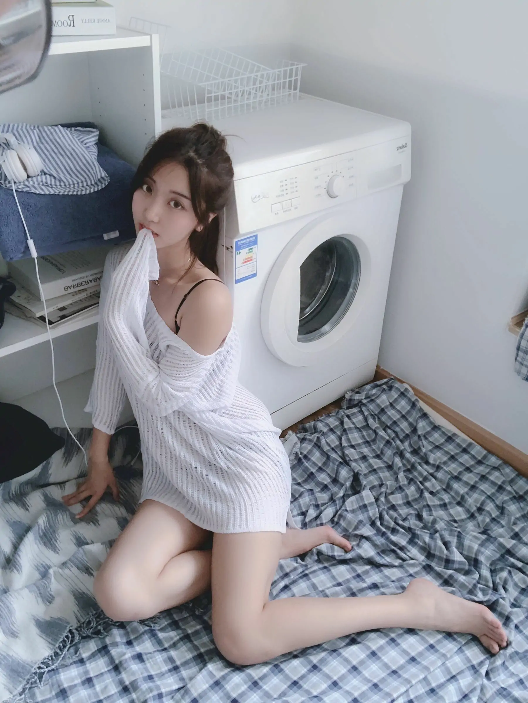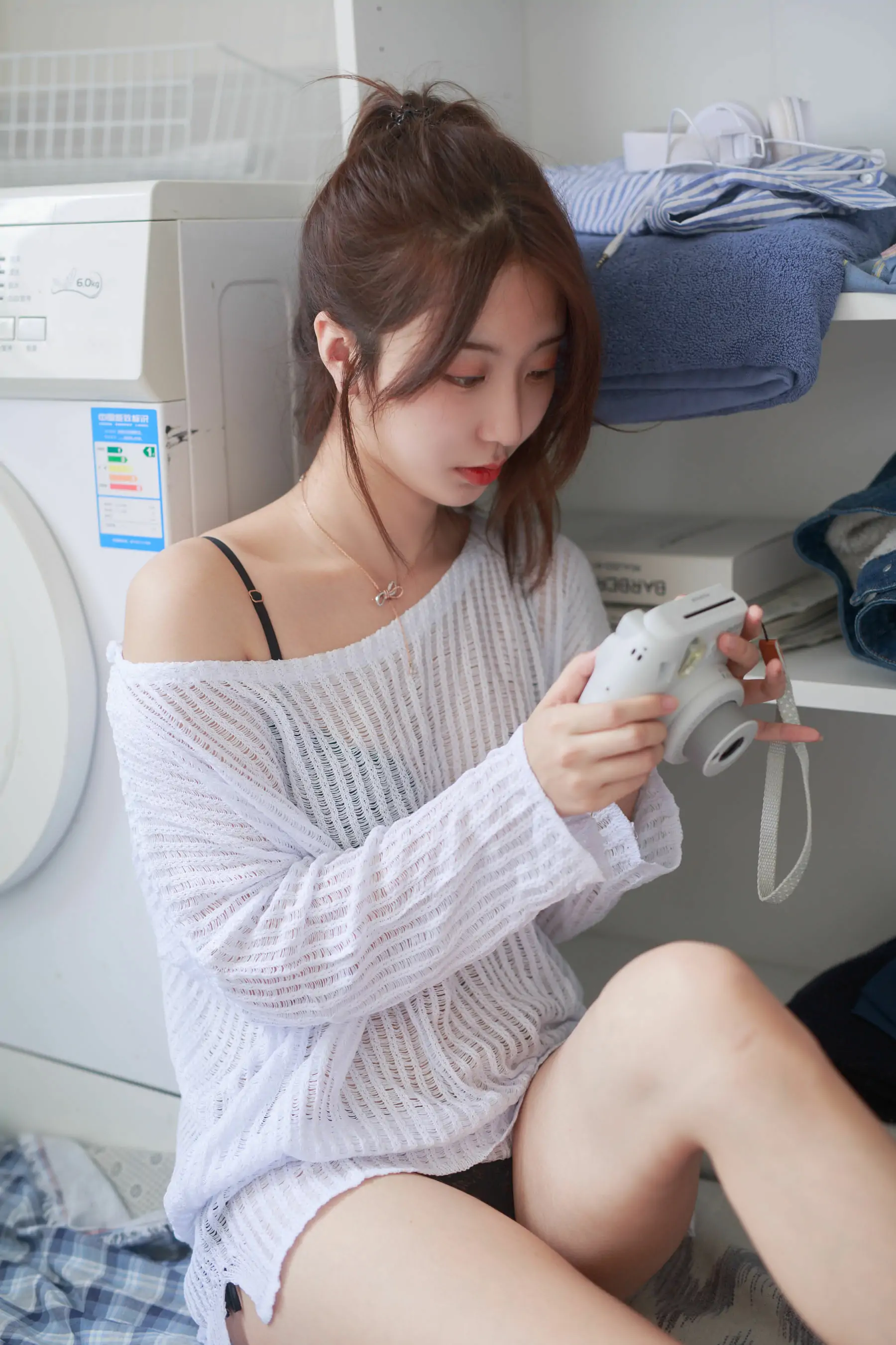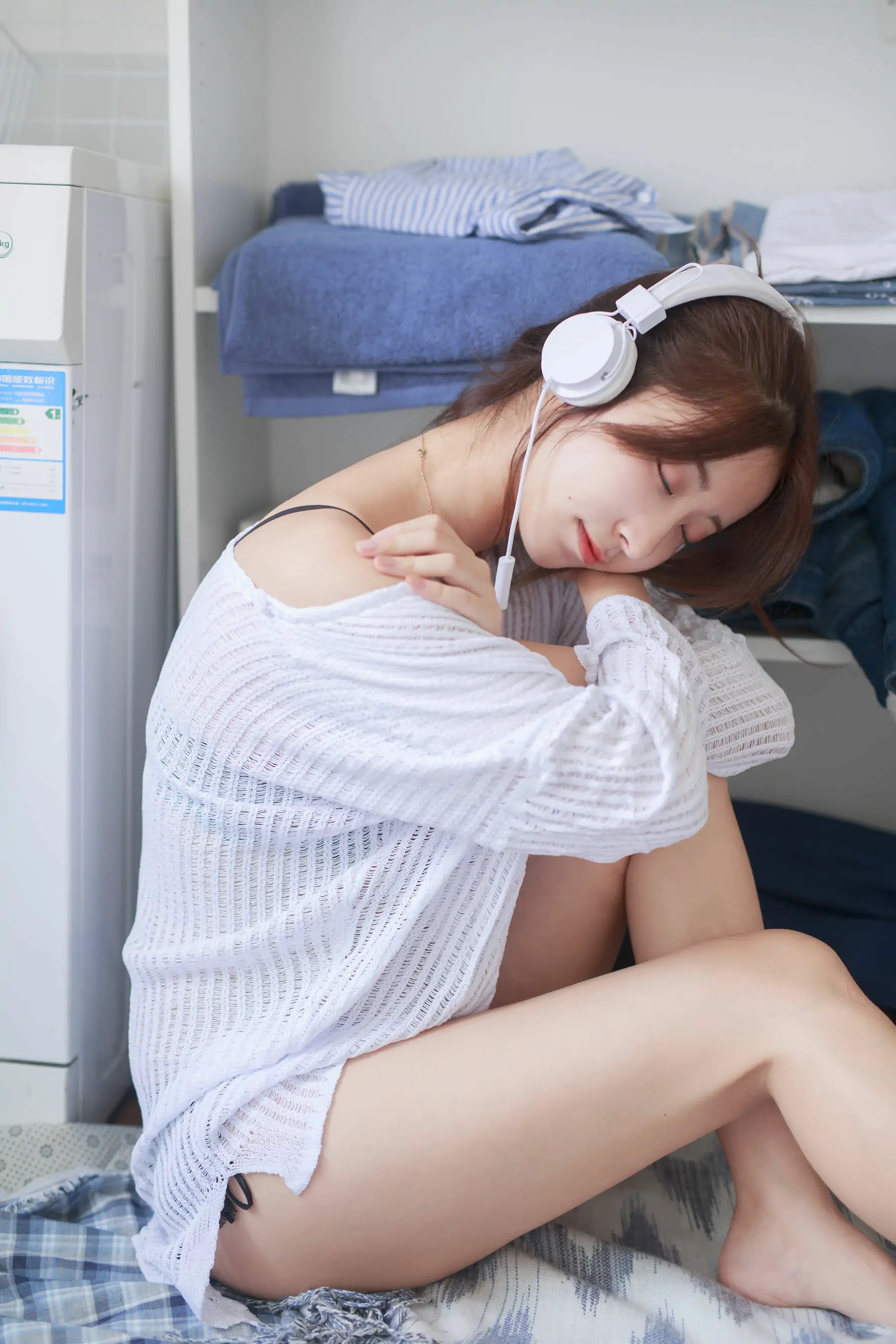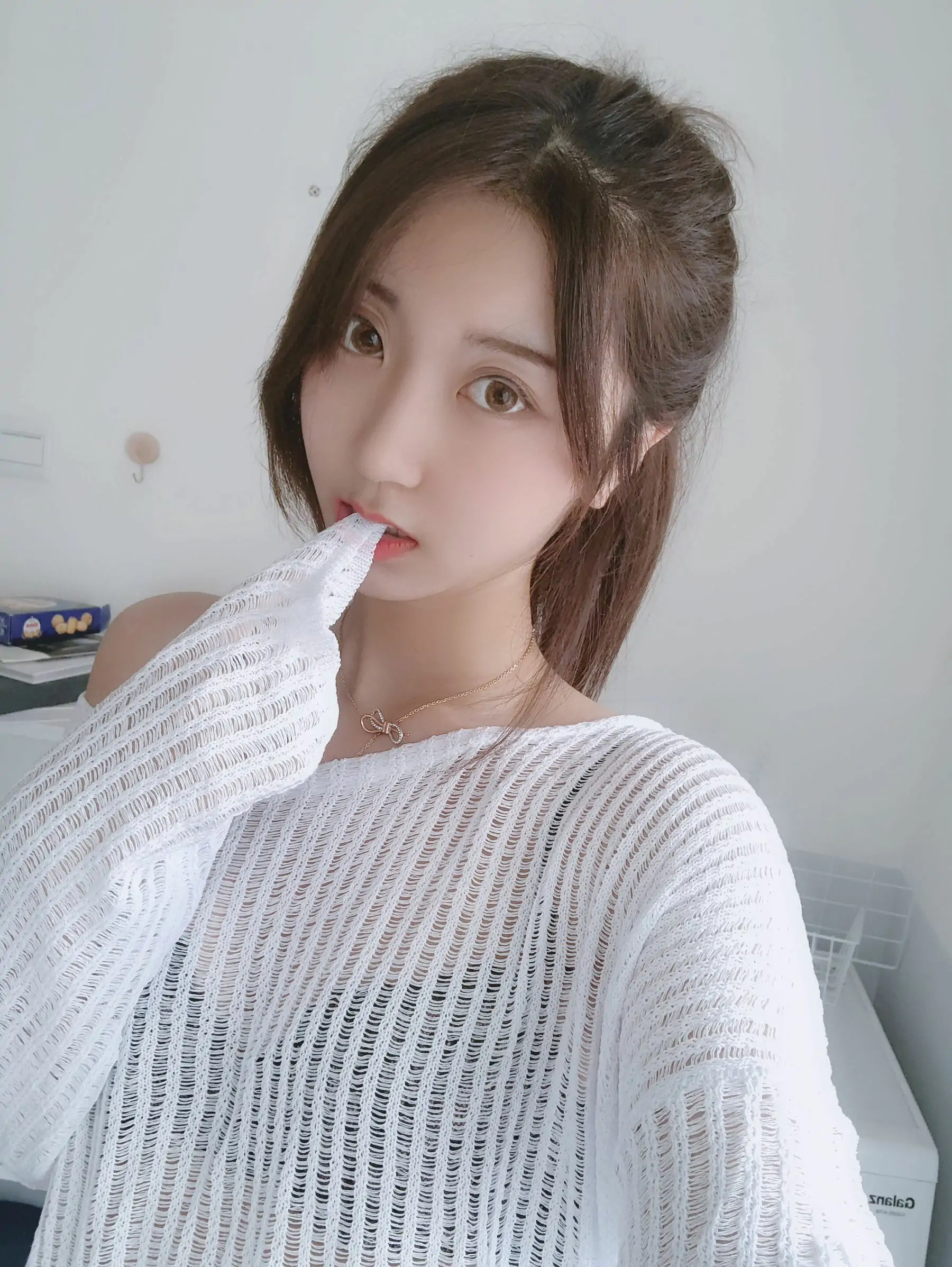 人气Coser黑川 白色洞洞毛衣(50P)