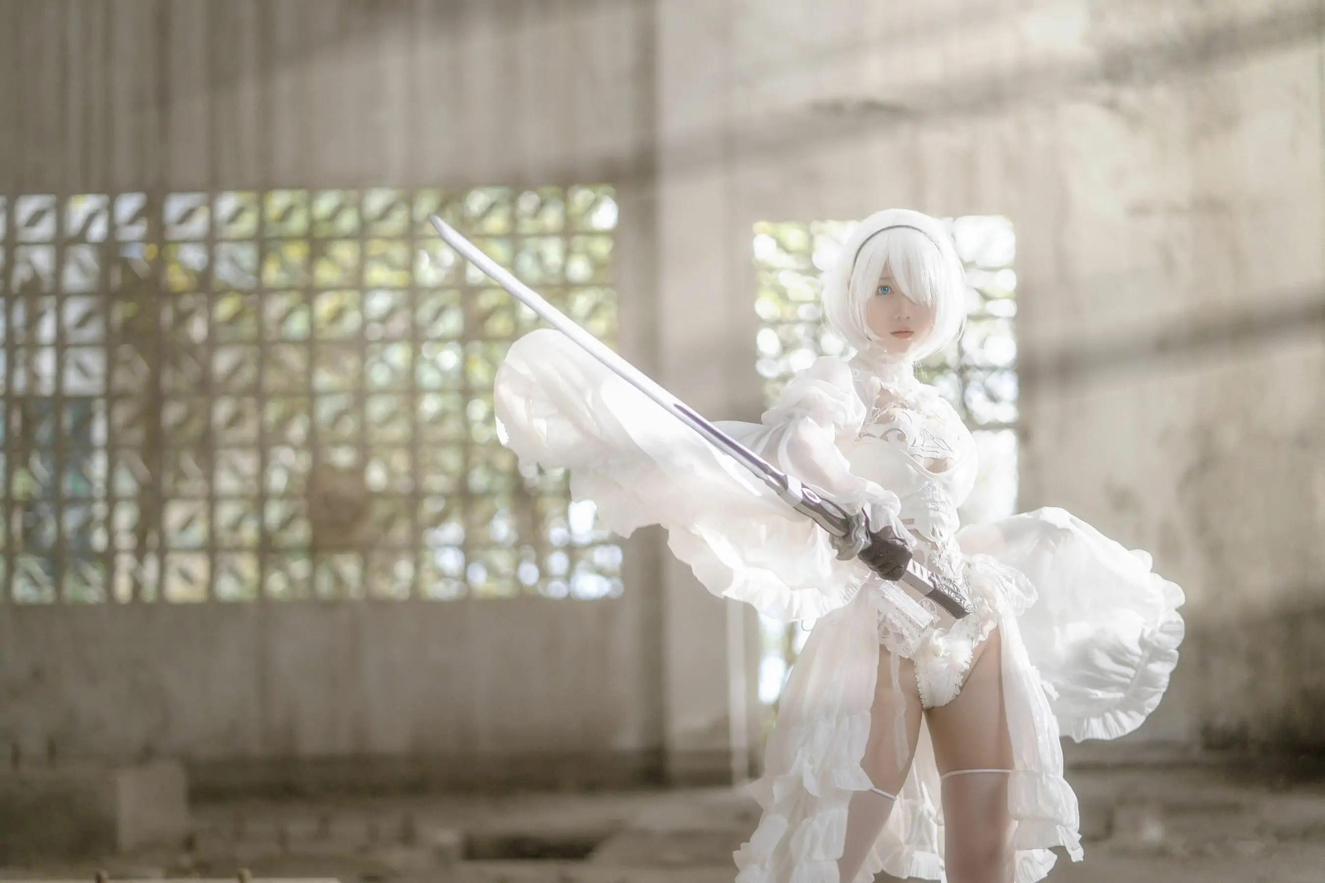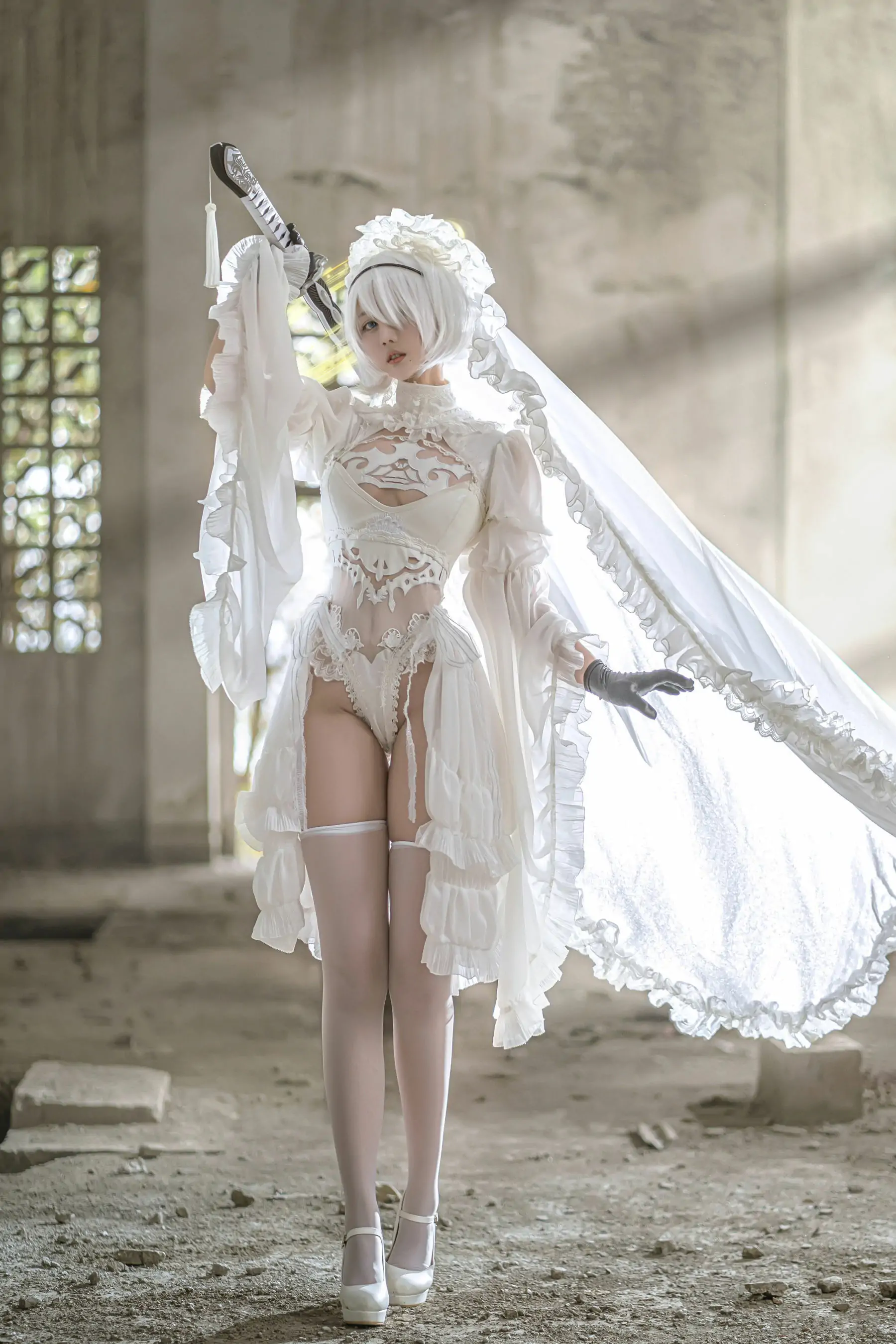 微博福利姬镜酱 2B白色婚纱(13P)