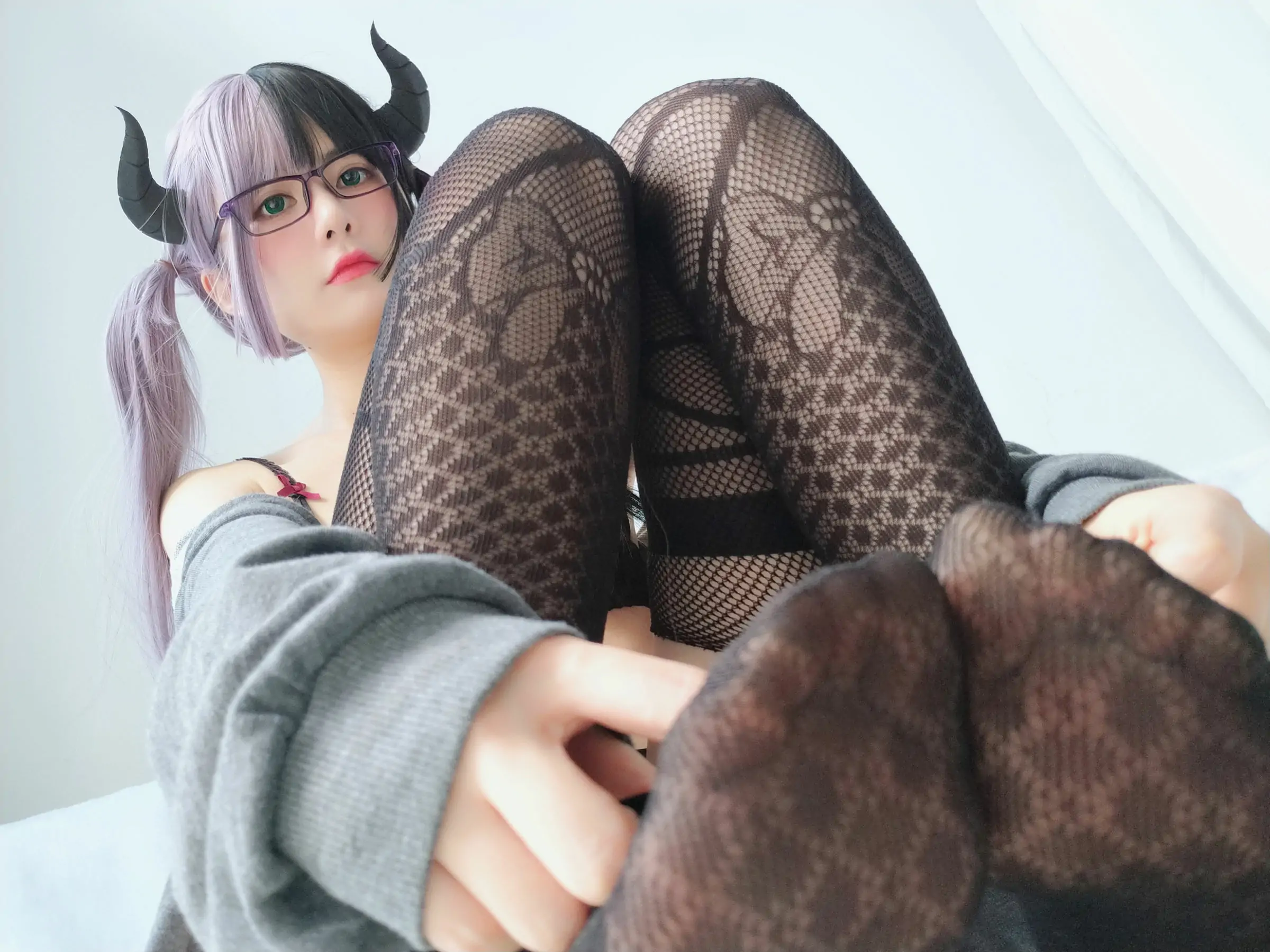 萌妹子眼酱大魔王w 黑色情趣网袜(30P)