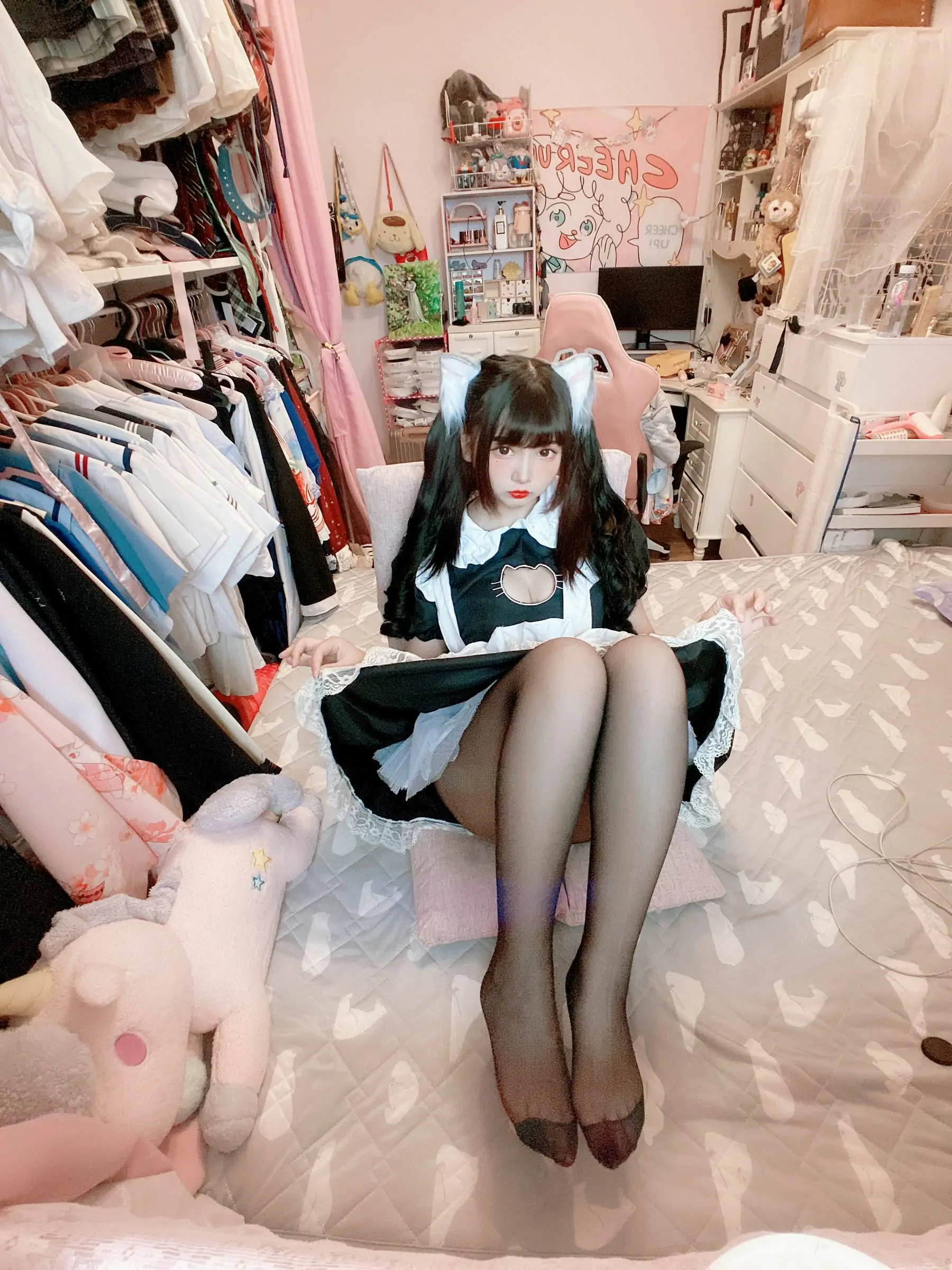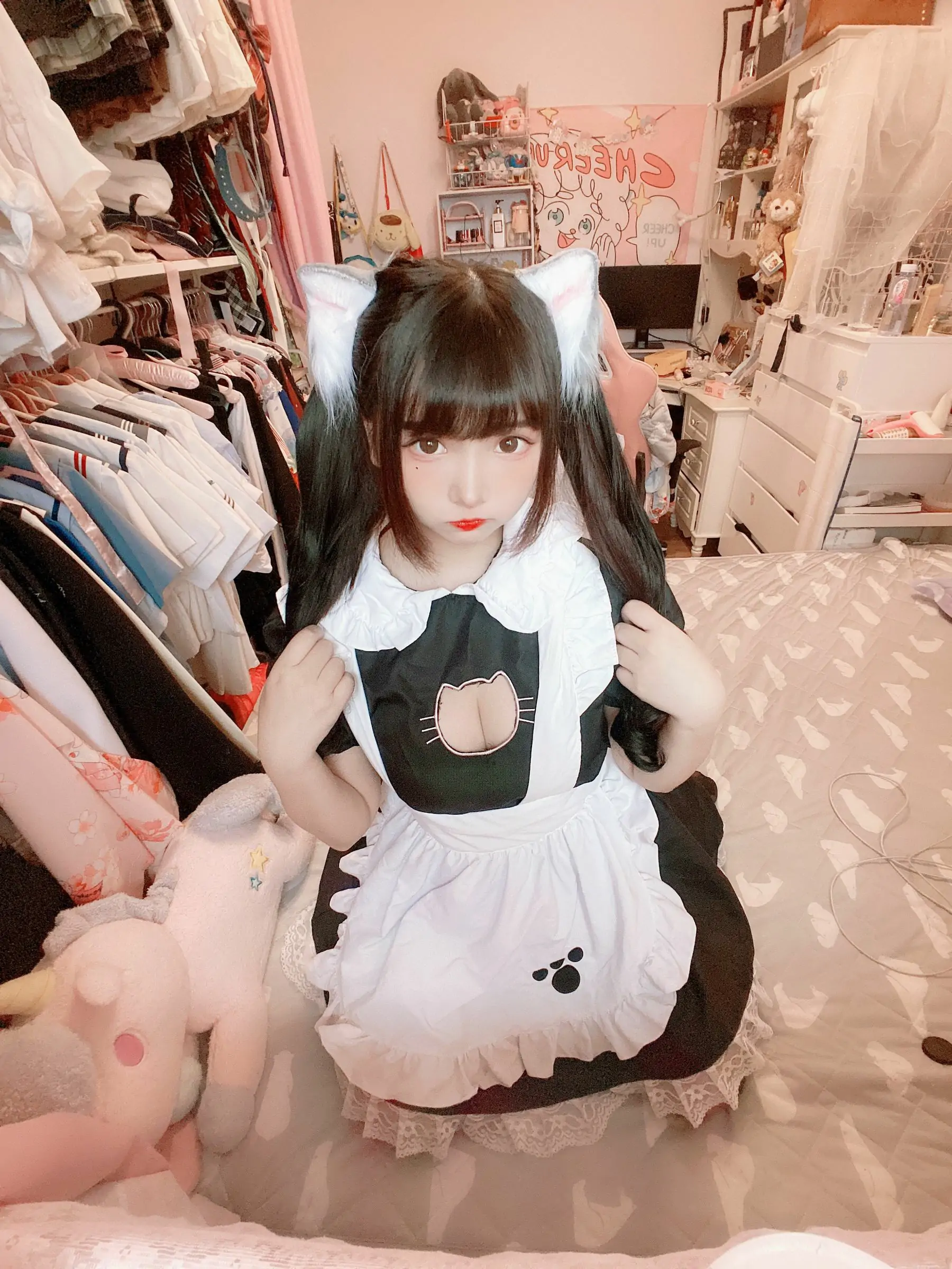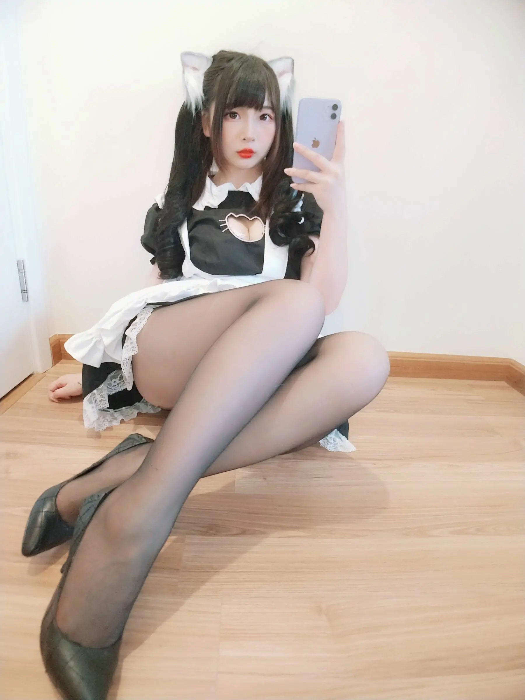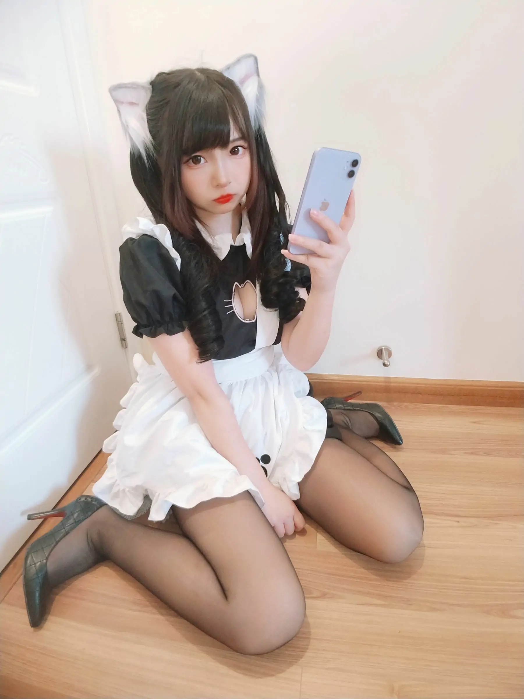 [COS福利] 二次元美女古川kagura - 黑丝开胸 猫耳女仆(55P)