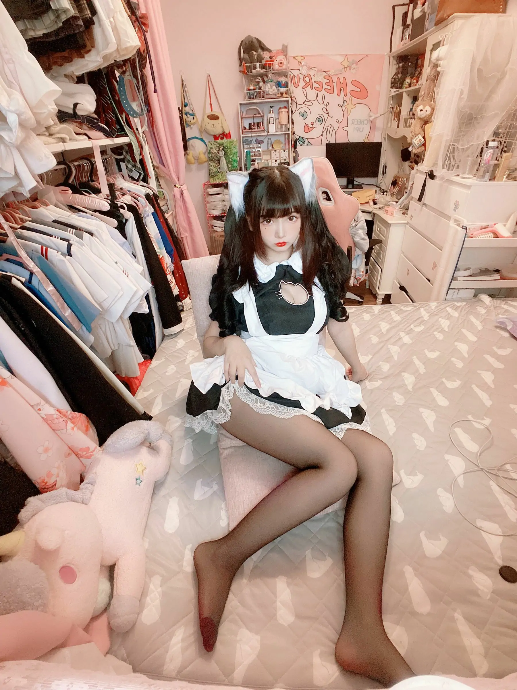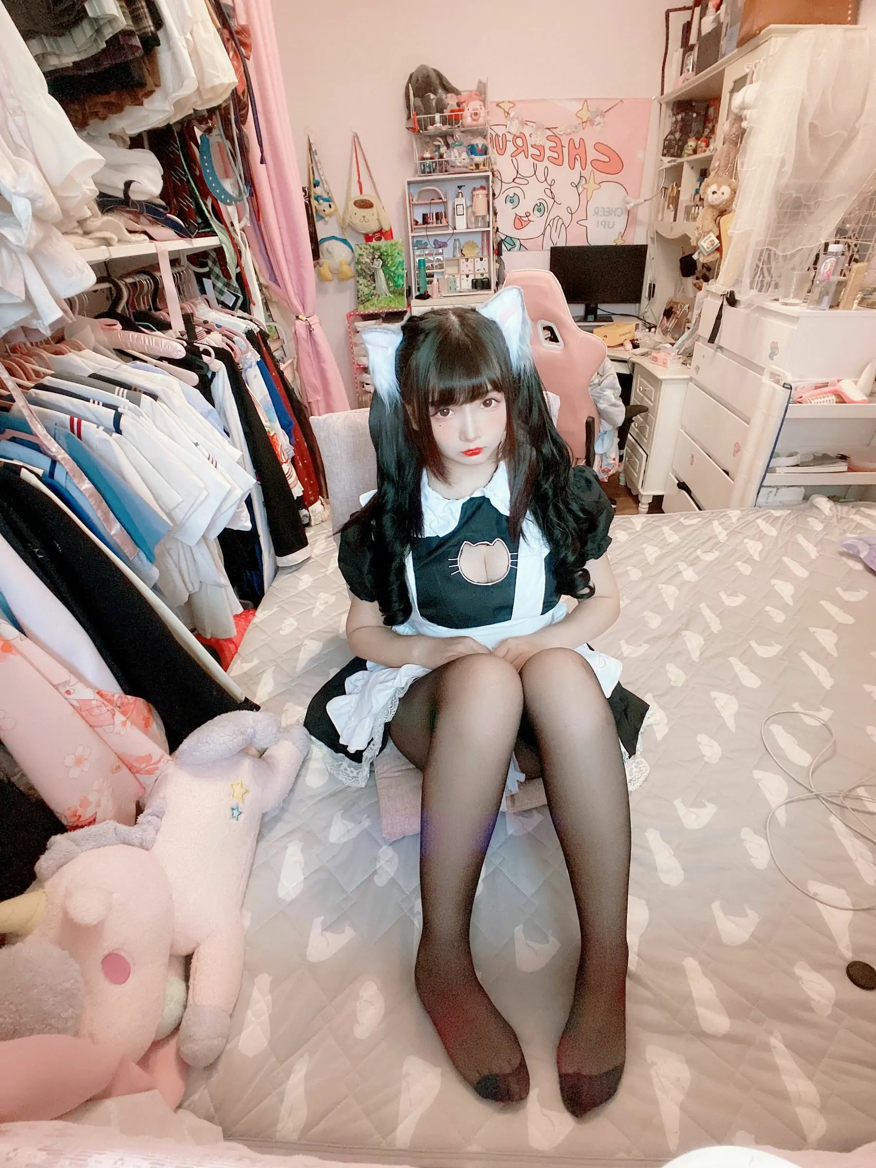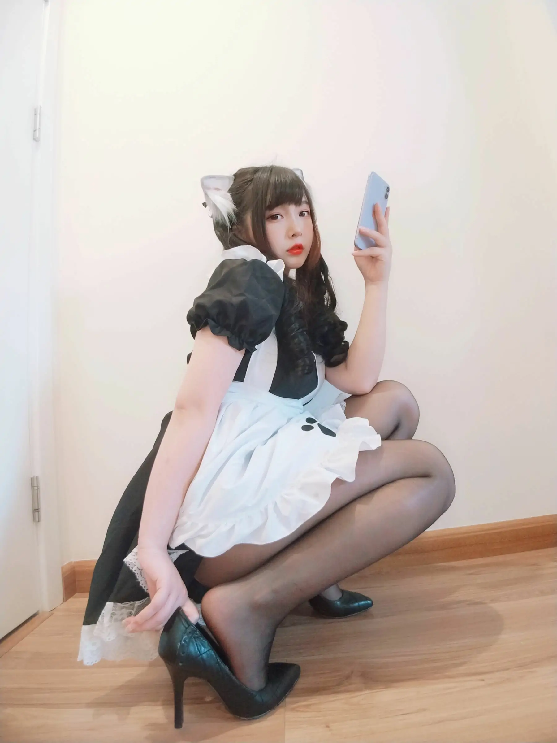 [COS福利] 二次元美女古川kagura - 黑丝开胸 猫耳女仆(55P)