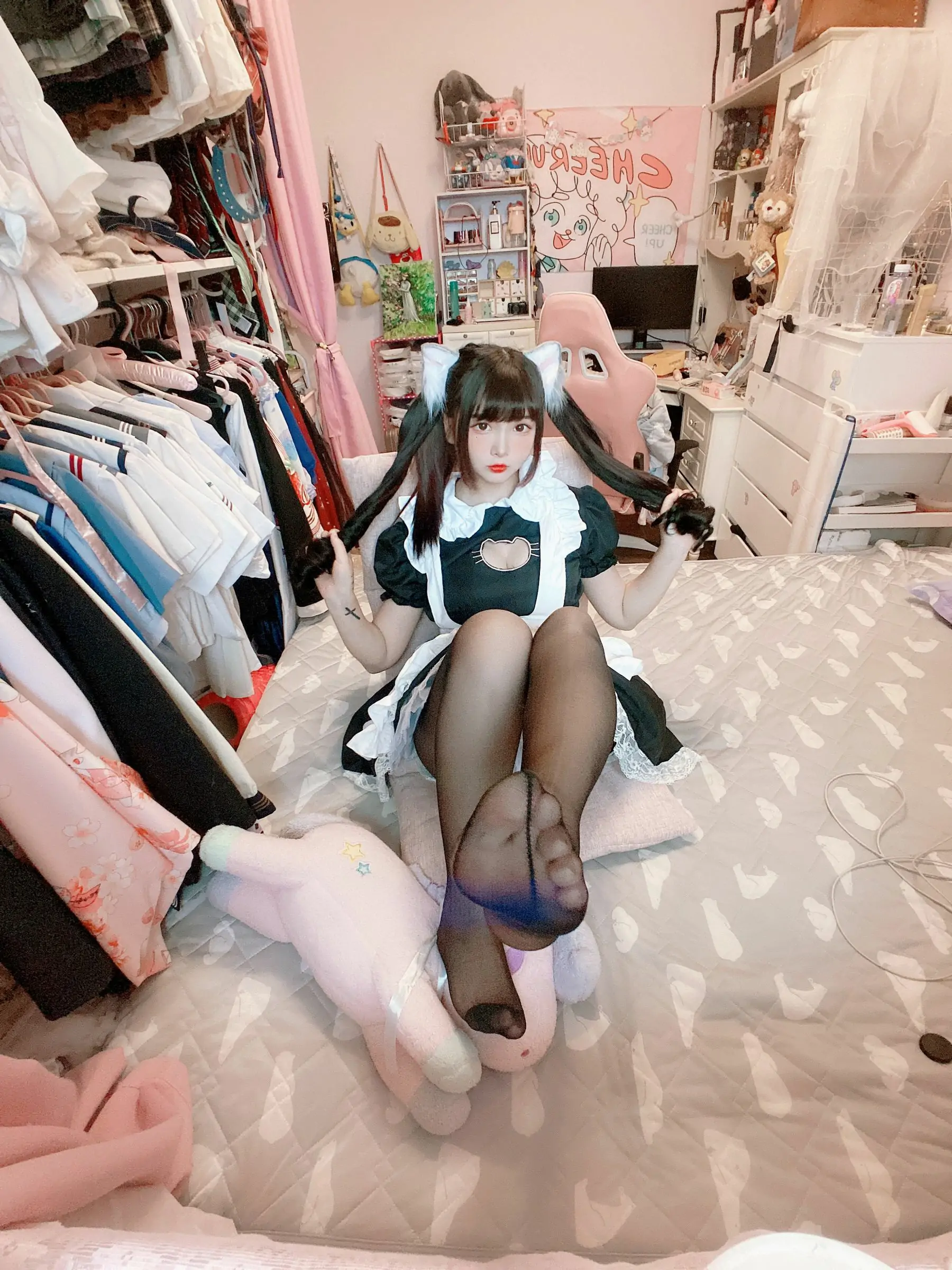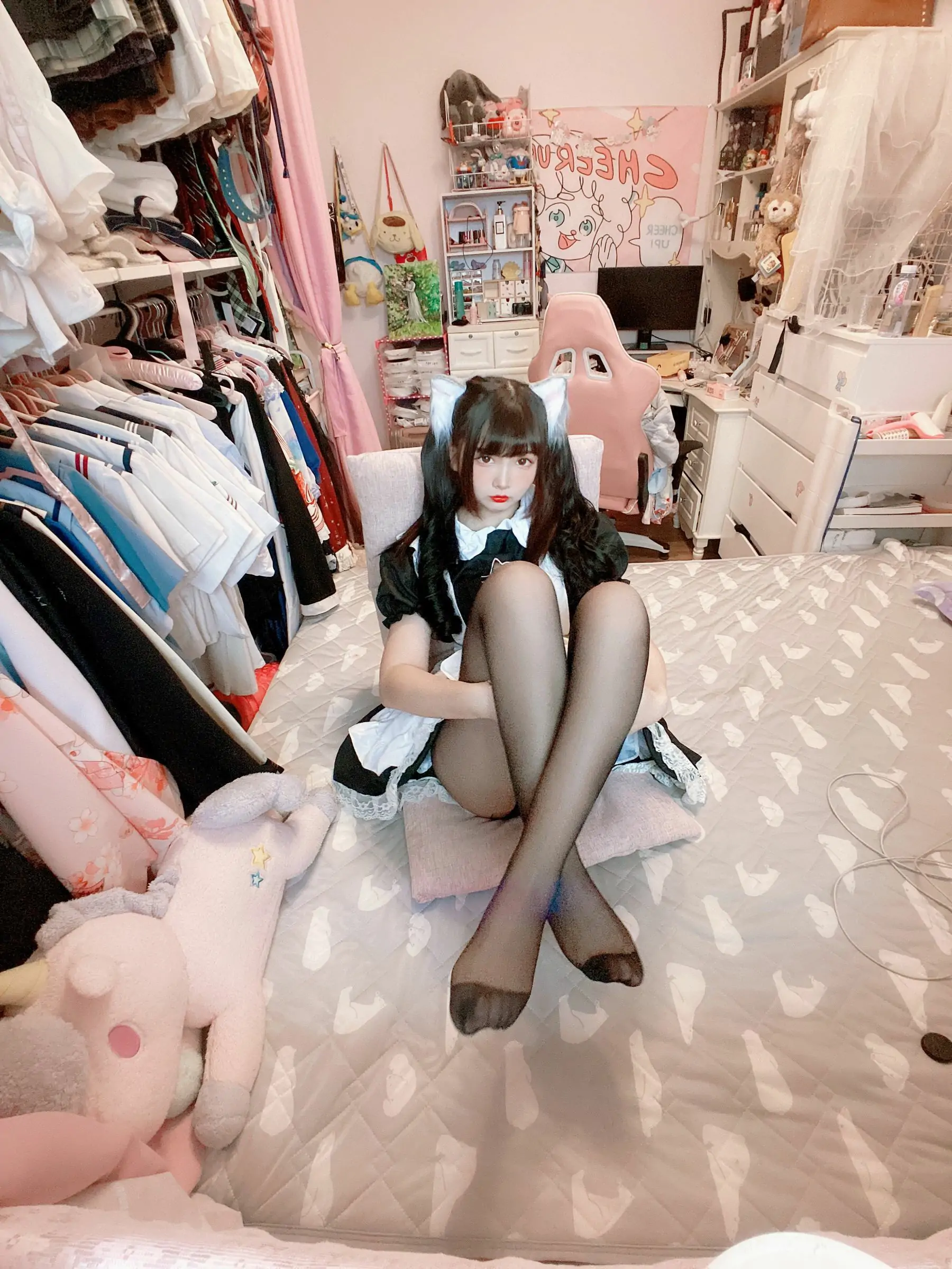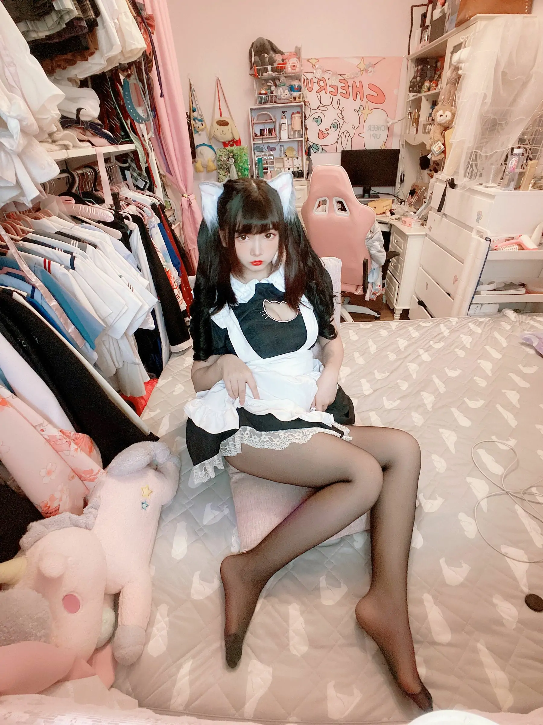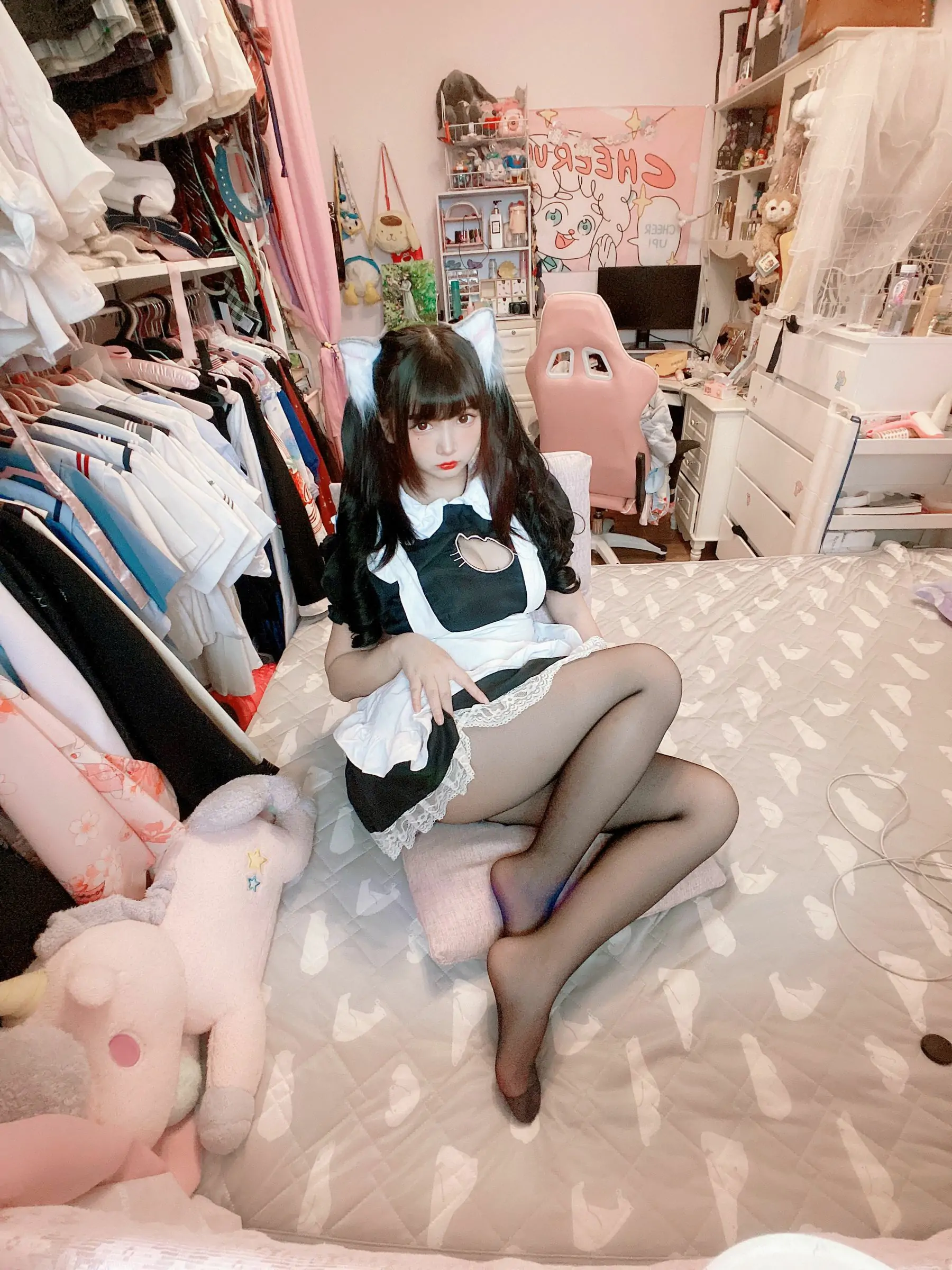 [COS福利] 二次元美女古川kagura - 黑丝开胸 猫耳女仆(55P)