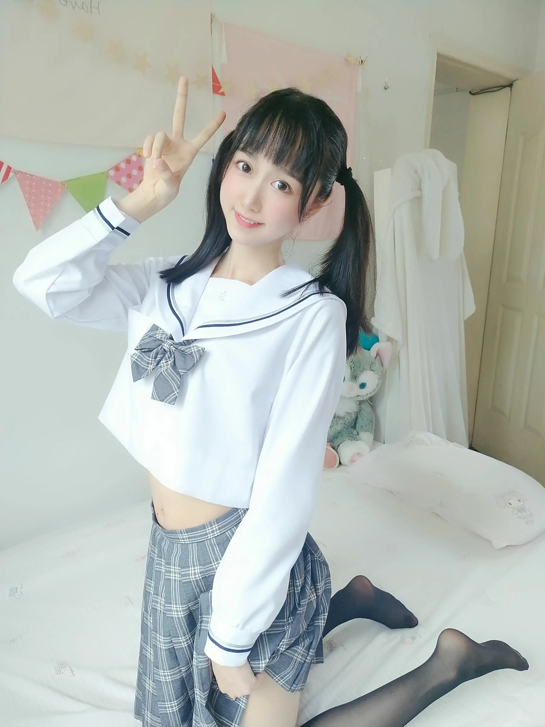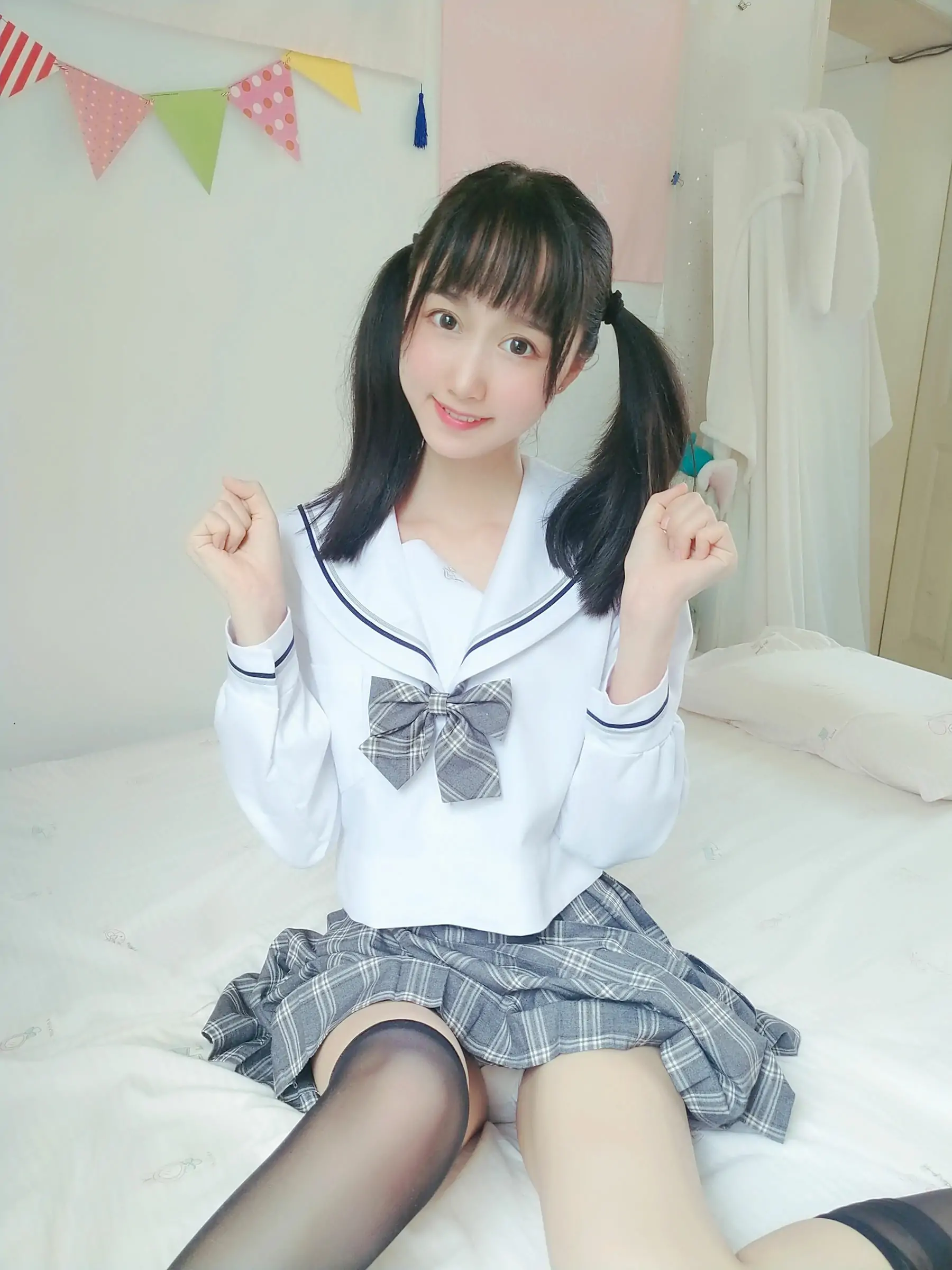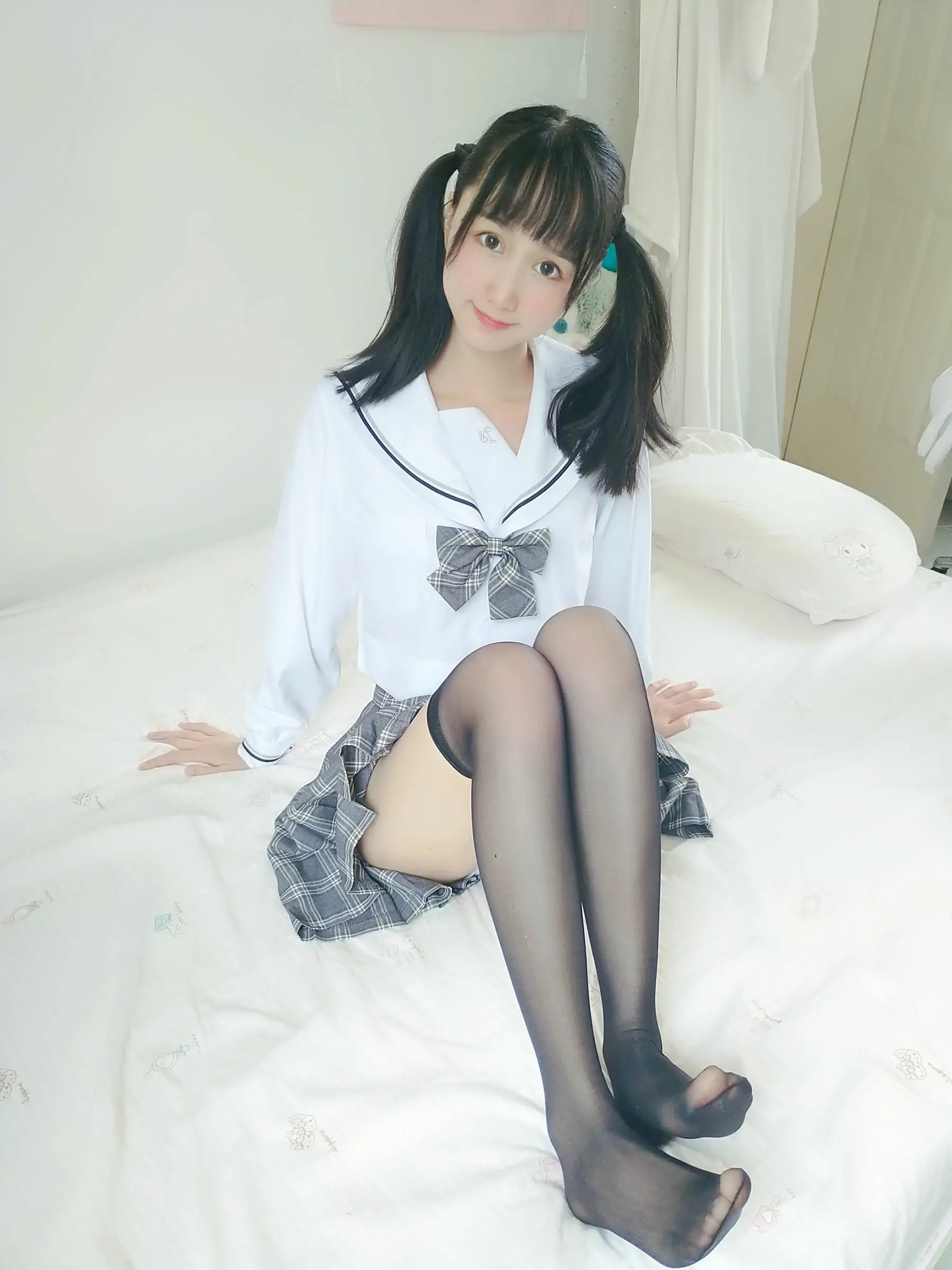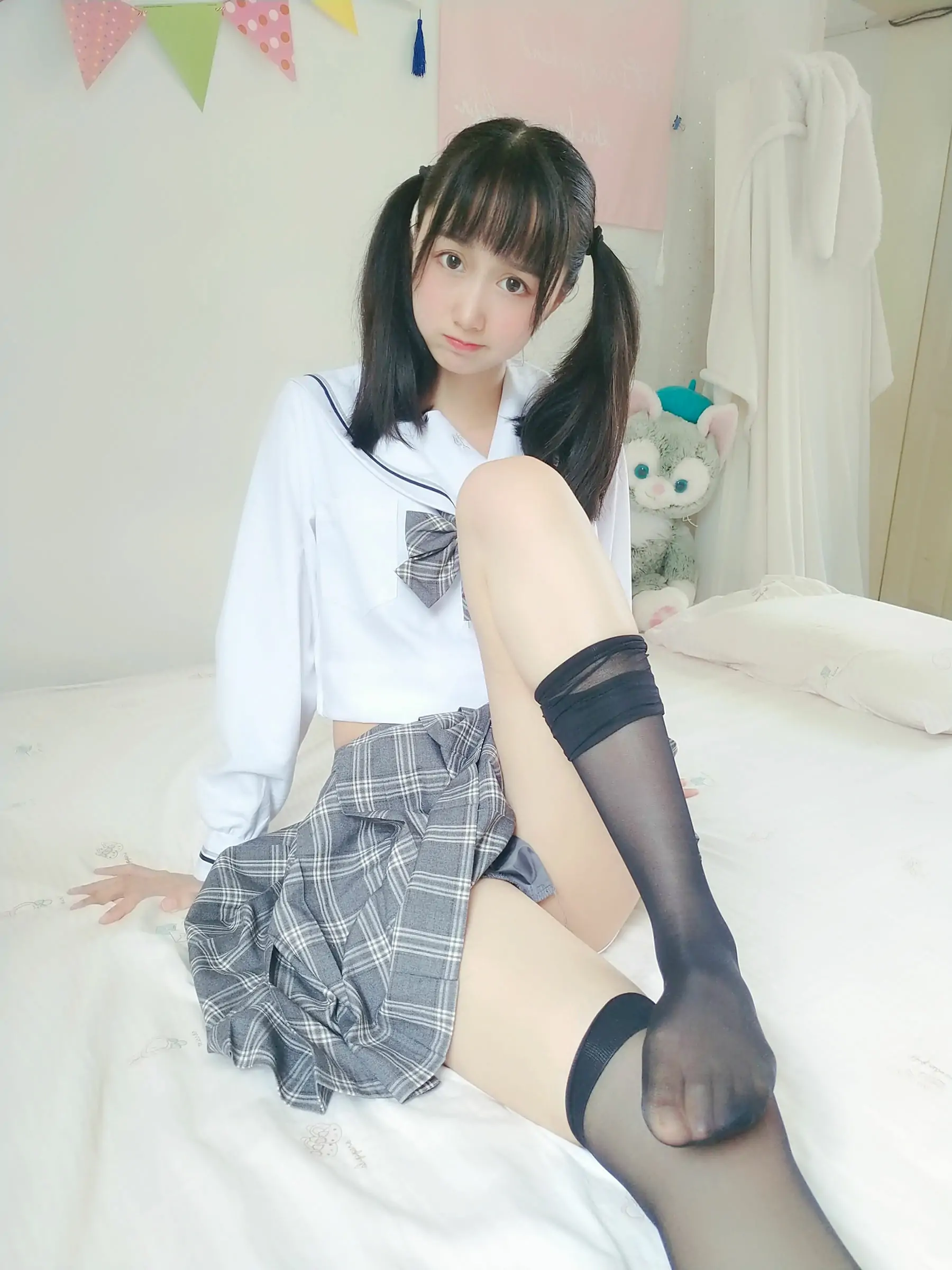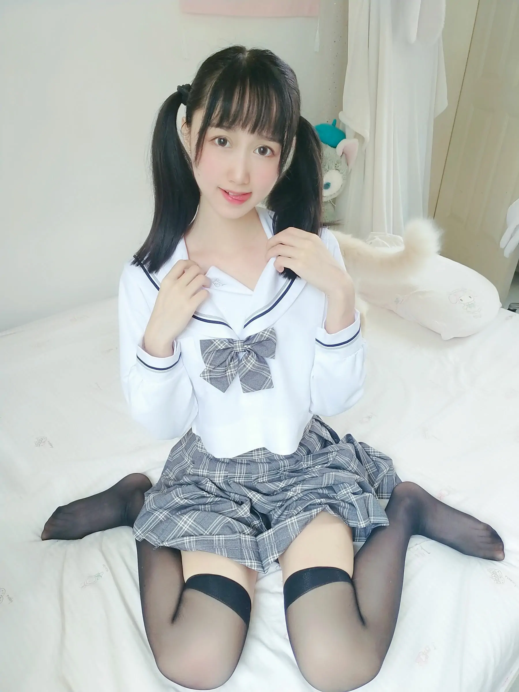 [COS福利] 萌系小姐姐木绵绵OwO - 灰格子JK(21P)