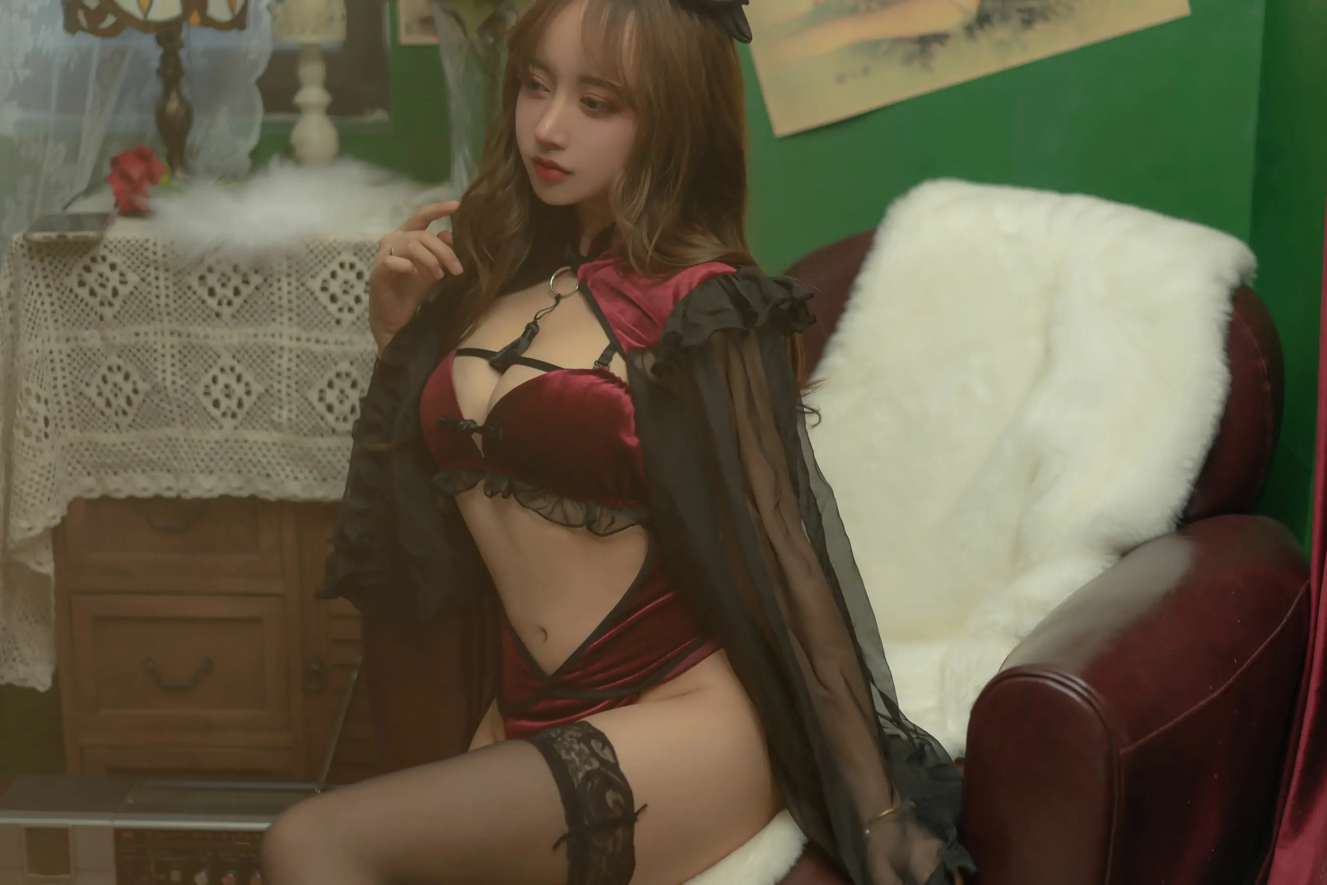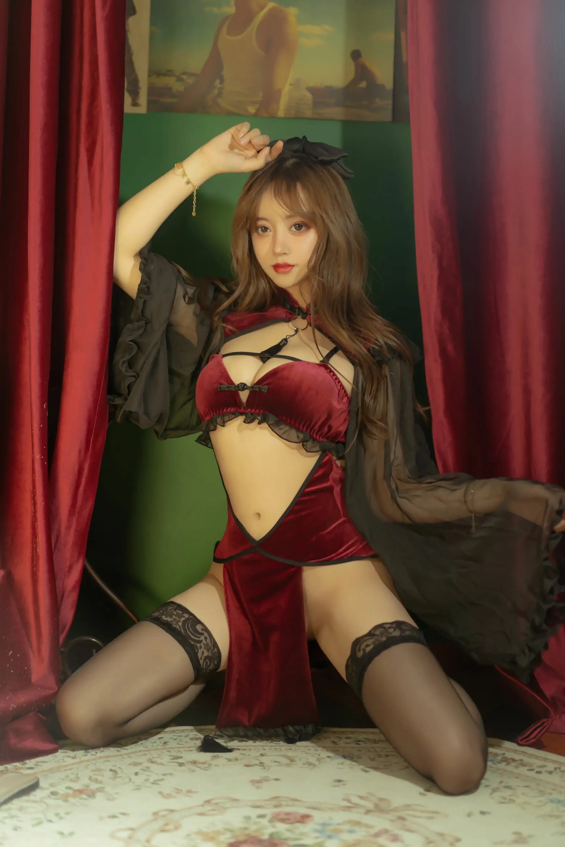 [Cosplay写真] 斗鱼米线线sama - 红丝绒旗袍(53P)
