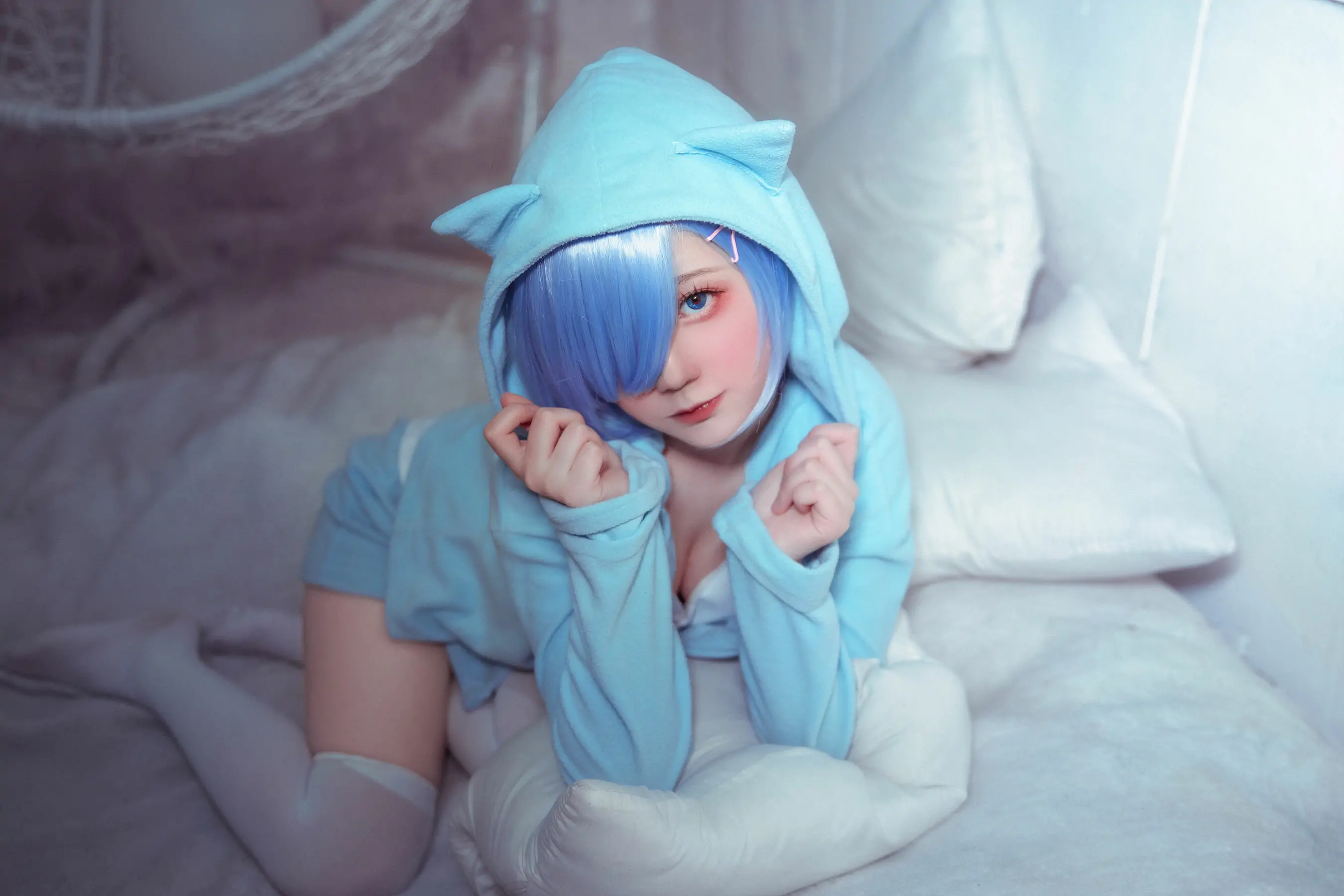 [Cosplay写真] 动漫博主弦音sic - RE从零开始的异世界生活 蕾姆猫咪睡衣(9P)