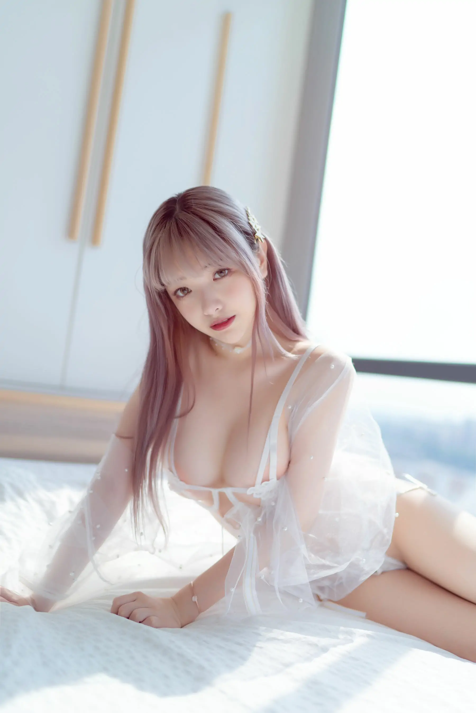 [Cosplay写真] 动漫博主雯妹 - 白色镂空(50P)