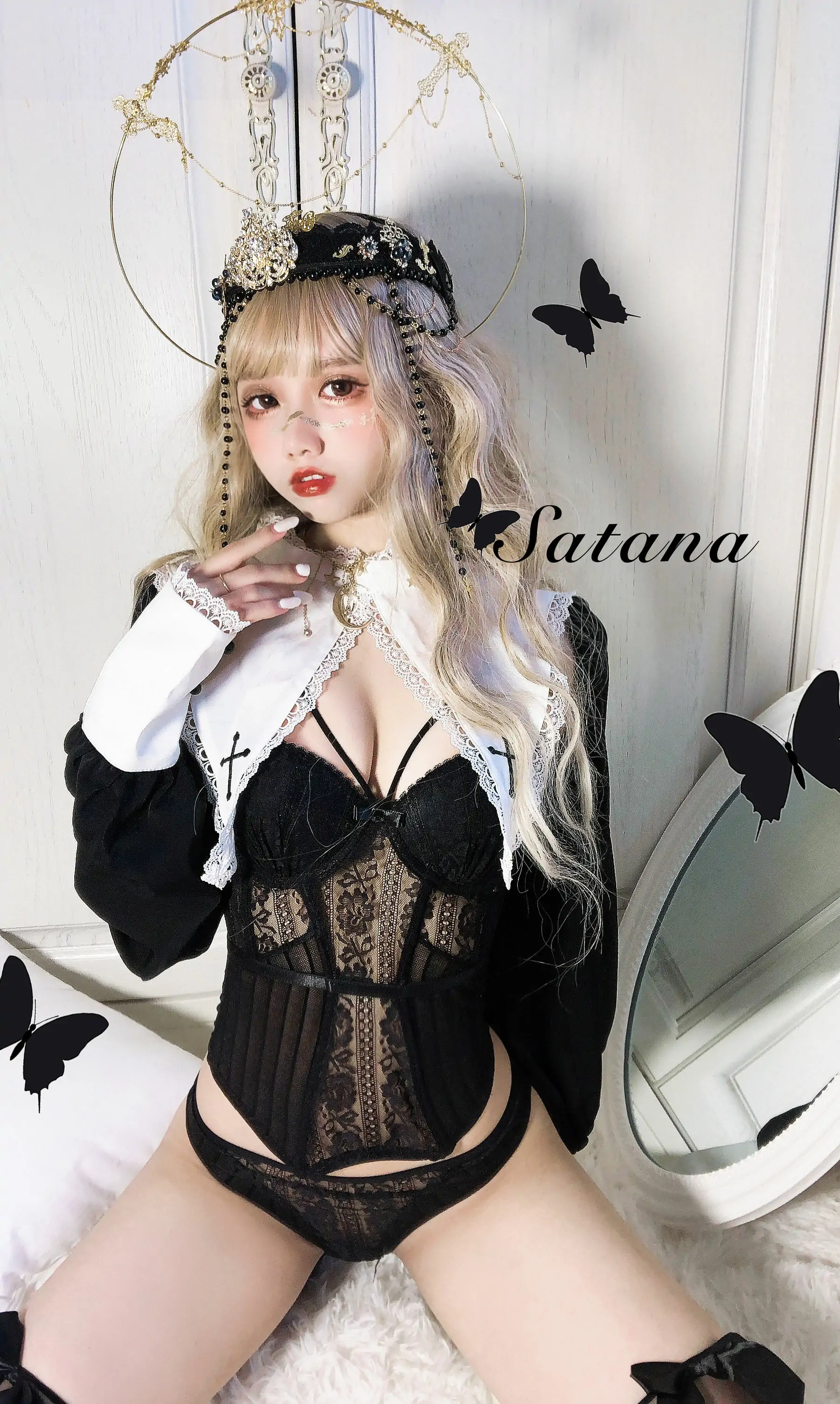[网红COSER写真] 动漫博主果咩酱w - 叛逆修女(30P)