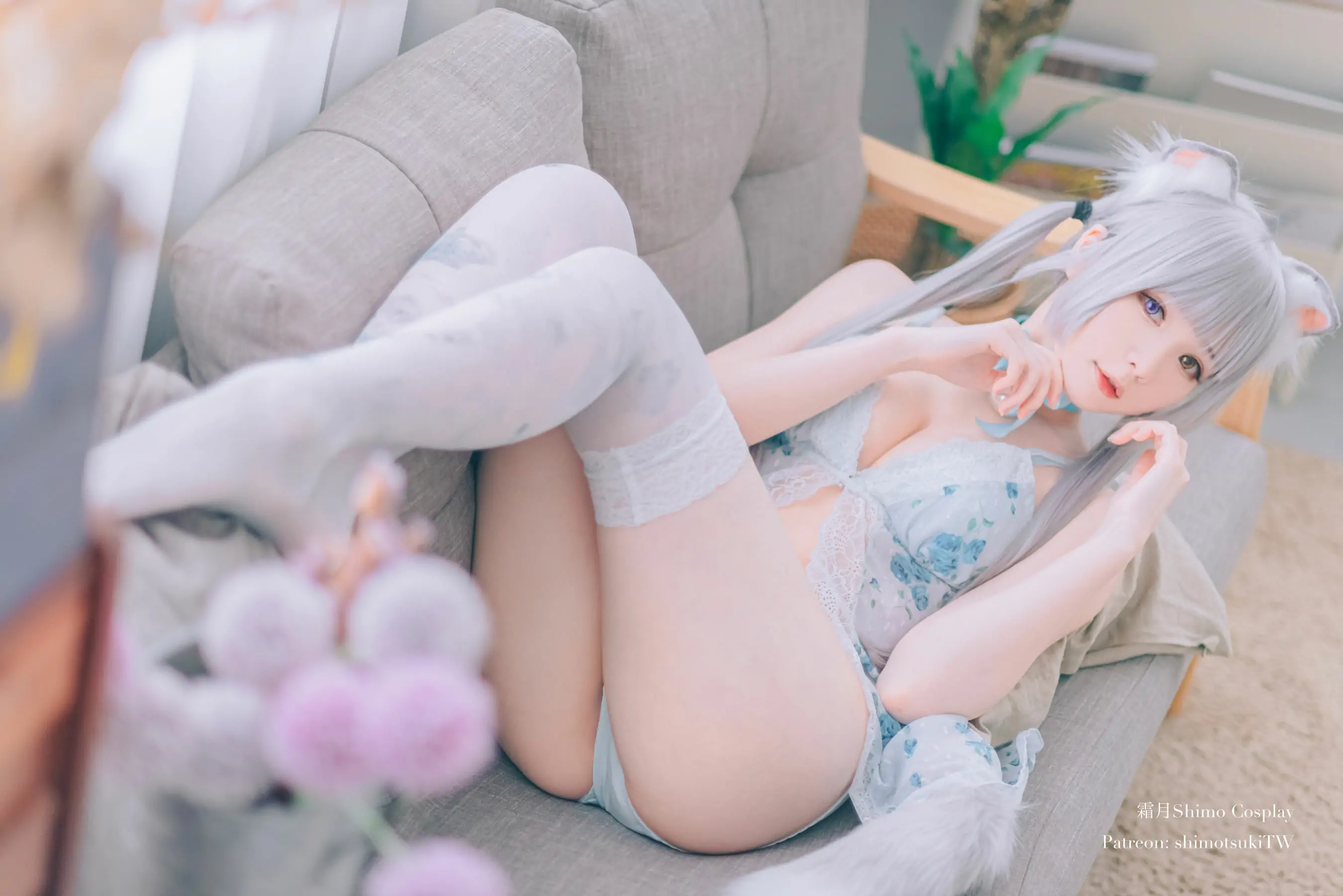 [网红COSER写真] 微博妹纸霜月shimo - ベビードールと灰色ねこ(15P)