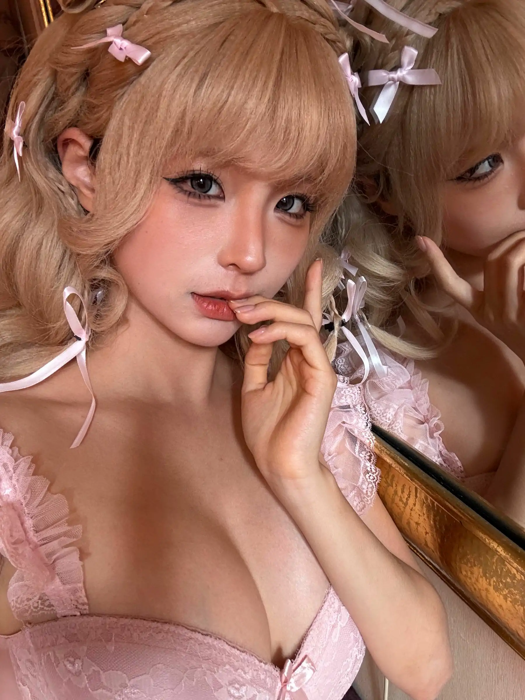 动漫博主蠢沫沫 - 金发蝴蝶结(94P)